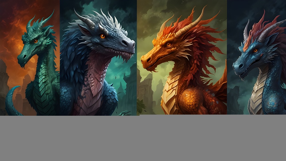 Discover the legends with this set of illustrations featuring mythical beasts from various cultures. Each artwork captures the unique characteristics and lore of creatures like dragons, griffins, and phoenixes, set against dramatic backgrounds.